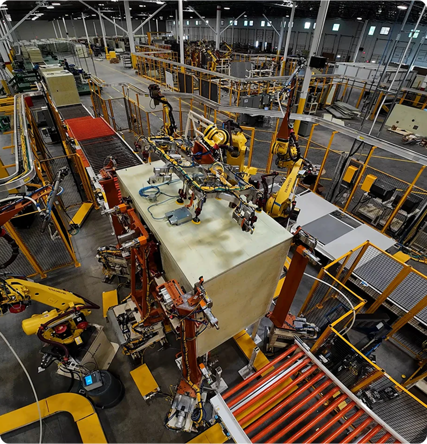 We manufacture bathroom and kitchen components using our HybridFabrication process—an automotive-inspired, conveyor-based assembly system that combines industrial manufacturing scalability with project-specific design adaptability.