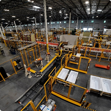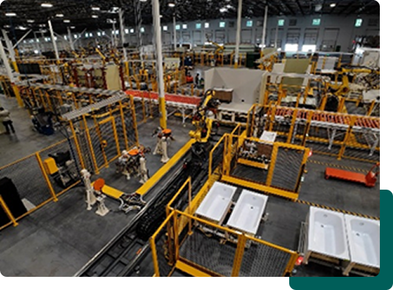 Unlike other bathroom component manufacturers, Resia integrates robotics, conveyor systems, and automotive-style subassembly build stations into its production lines.
