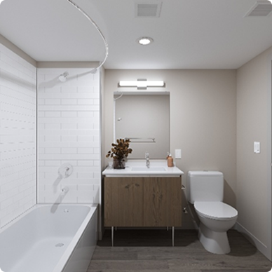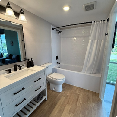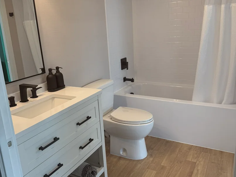 Bathroom components arrive fully finished—complete with plumbing, electrical, and finishes—and are installed in a single day by a 2–3-person crew, with connections completed in under 4 hours.