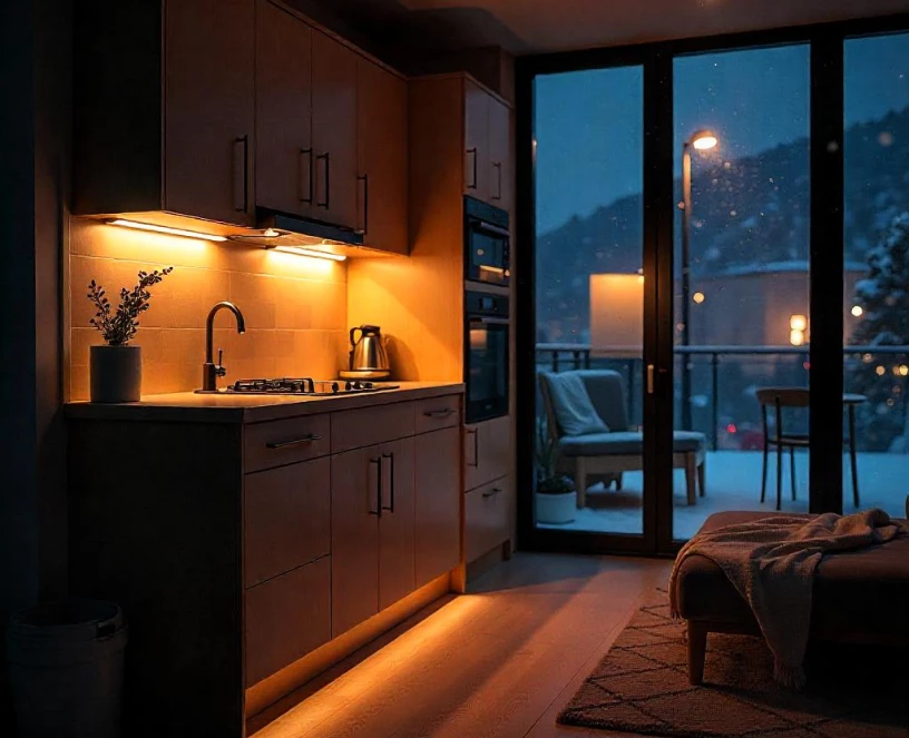 Under-cabinet lighting, smoke detectors, task lighting.