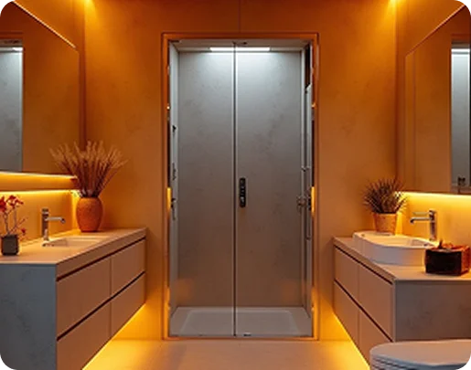 Traditional high-voltage systems are overbuilt for today’s high-efficiency LEDs and connected smart devices. Resia’s LV platform redefines electrical design by operating at 48–51V DC Class 2, eliminating high-voltage runs in occupied spaces while delivering safe, efficient power to lighting, fans, USB chargers, smart mirrors, and more.
